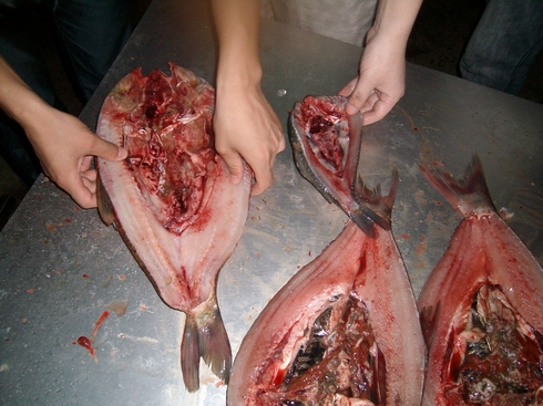 上图中所示为0.5斤的鲫鱼、2.5斤的白鲢和近4斤重的草鱼,都能理想地剖杀。