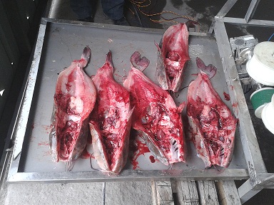 上图中所示为0.5斤的鲫鱼、2.5斤的白鲢和近4斤重的草鱼,都能理想地剖杀。采用特别装置可以剖杀鮰鱼和白鲢、草鱼、鳊鱼等。