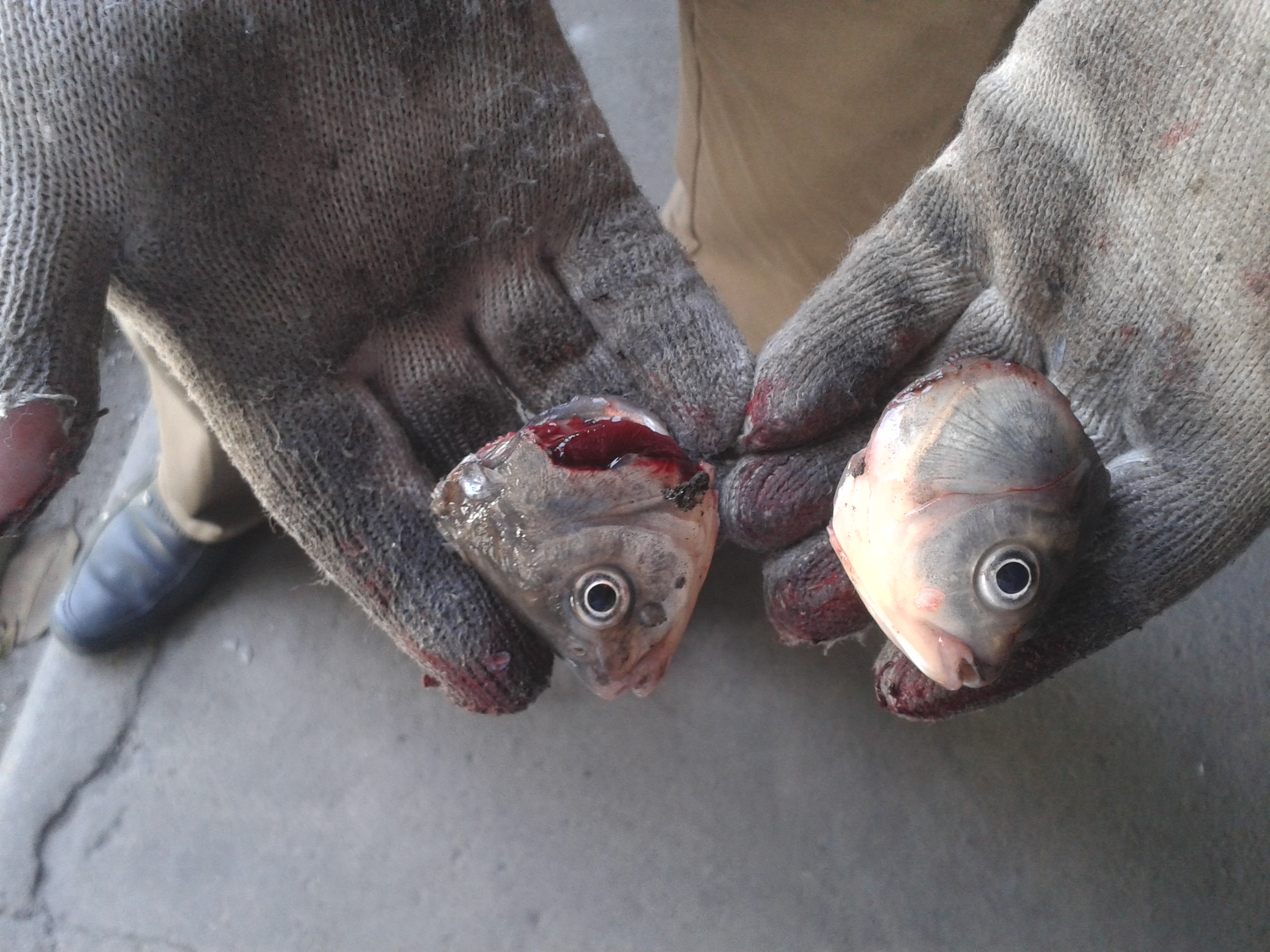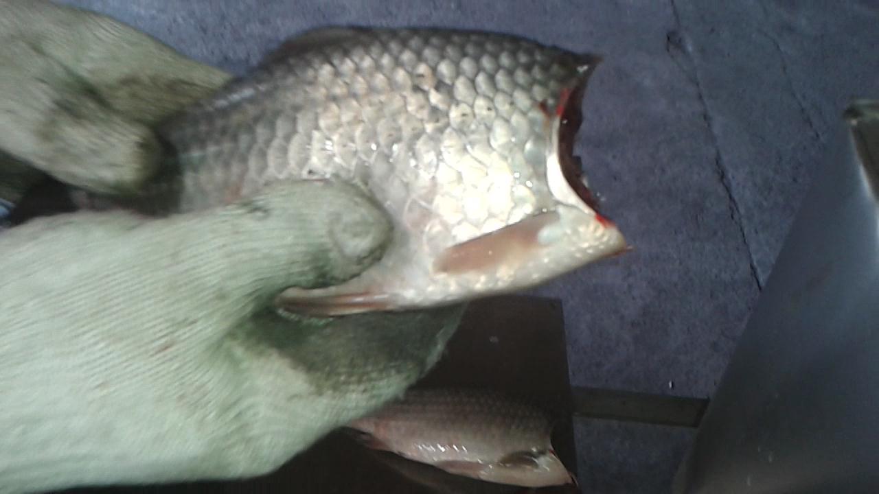 沿鱼头鳃盖后部弧线切下。操作简便,工作稳定,减少鱼头带走的鱼肉,提高出肉率。